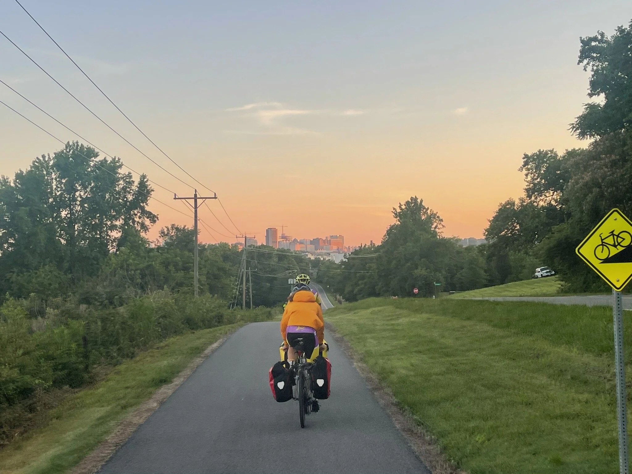 About 7 miles in, we could see Richmond’s tall towers with the sunrise rising behind it. Sadly, we didn’t stop for breakfast, but that didn’t keep us from taking some cool photos. Cole led us to breakfast with incredible speed and consistency.
