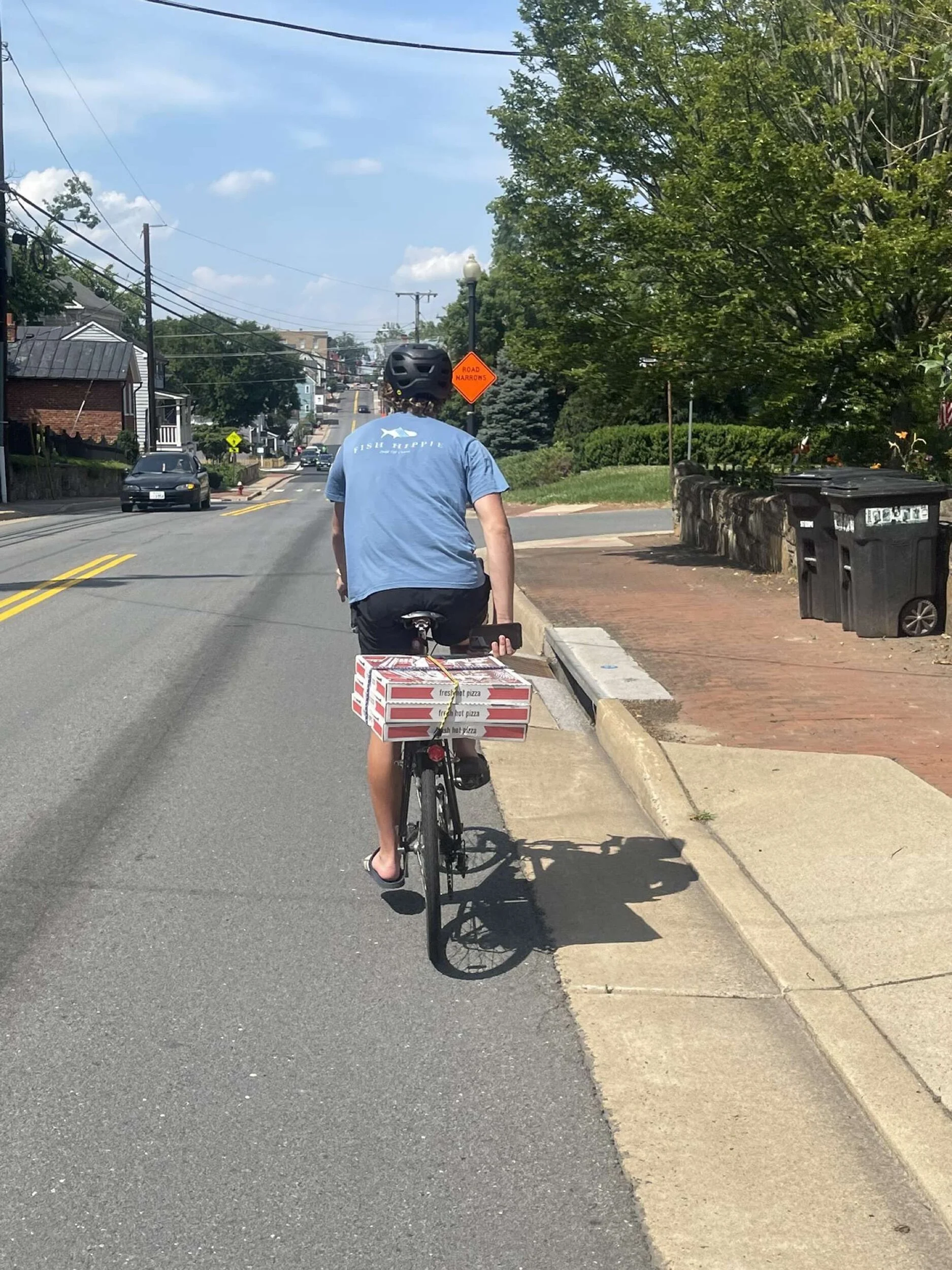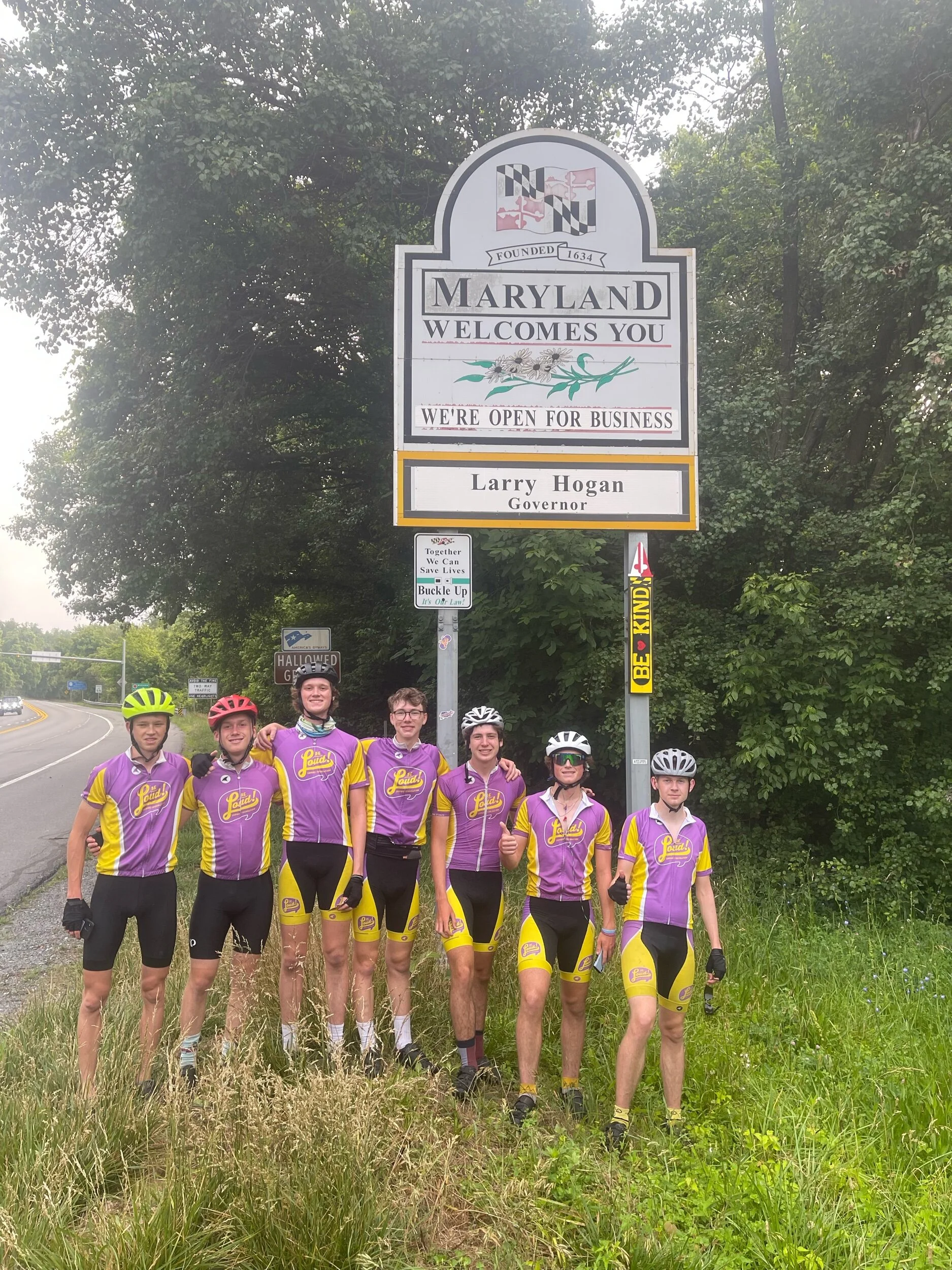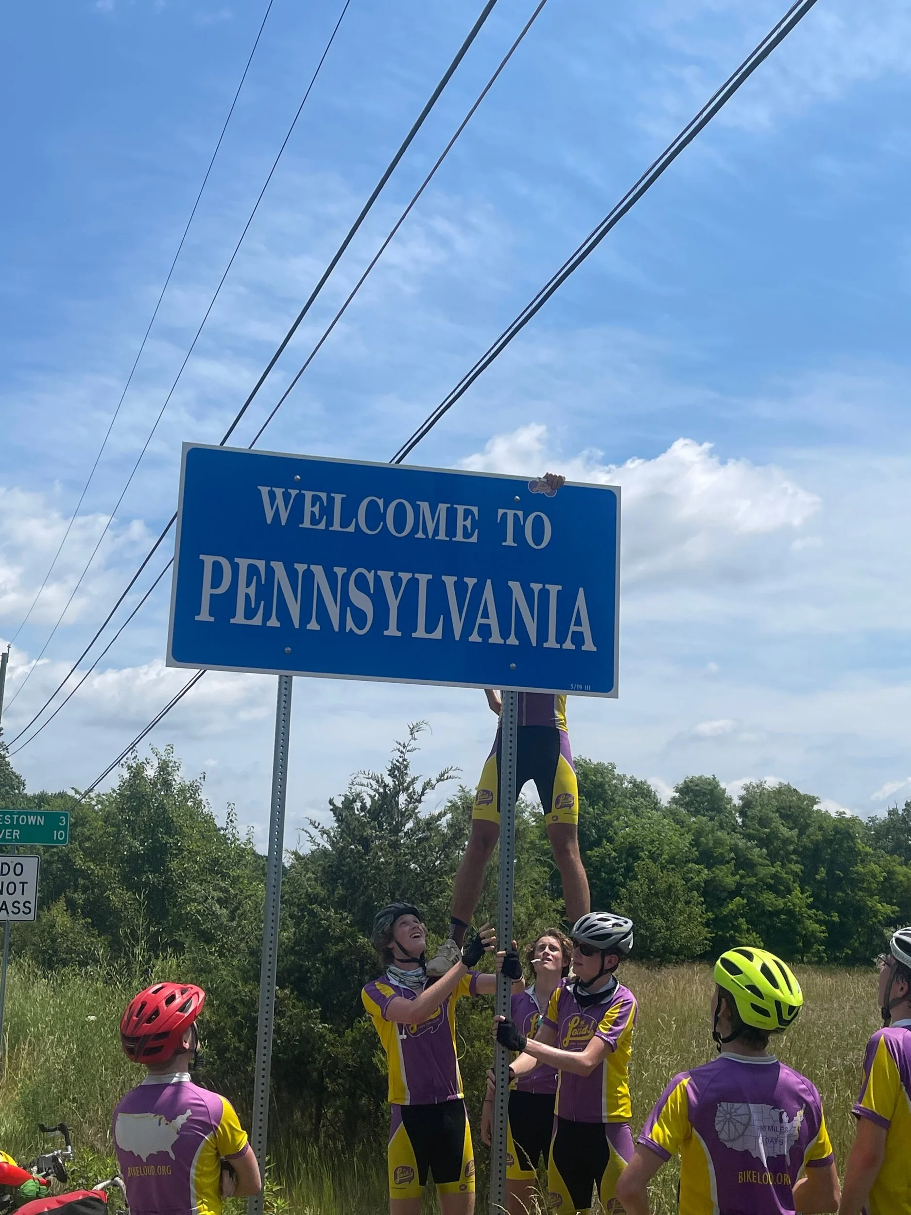 Today was particularly exciting for the reason that we biked through three different states from start to finish. We began our ride in Virginia, cruised through Maryland, and ultimately finished in Pennsylvania. As is tradition, each group placed a Bike Loud sticker on the road signs welcoming us into each new state. A friendly competition between biking groups is to place the sticker as high up as possible on the sign - more specifically, higher than the other group. I rode with the second group today, and we accomplished this feat both times as Max and Hugh hoisted up Daniel to ensure we positioned our sticker as high as possible.