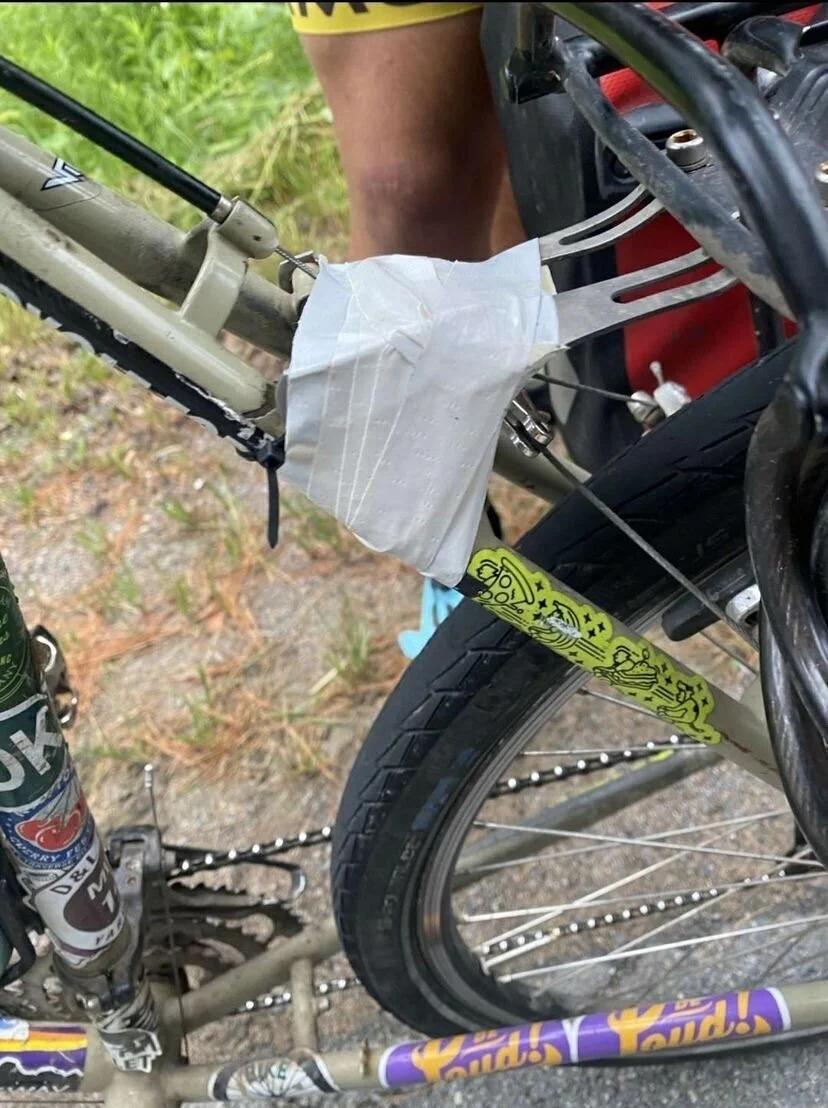 Tonight we are staying at a house that some of the Hawley’s friends just bought. We arrived to the house at around 11:30, so we were responsible for lunch and dinner and getting a snack for pre breakfast. Max and I left around 12:30 to go to a Circle K to get the food we needed and some cold drinks. Around half a mile away from the house, one of Max’s spokes popped out of the wheel. This meant we had to bike 5 miles to an REI instead of the 2 miles to the Circle K. Max’s rim also had 3 cracks, so the wheel was retired. However, the adults wanted us to bring the wheel back so we could repair it under warranty. Max and I strapped the rim to my rack, then went to Subway for lunch.