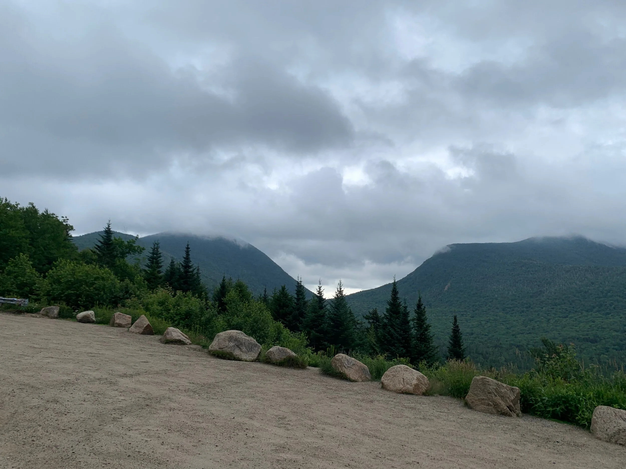 Our day started out with a 6:00 wake up, because we thought it would be raining until then. However, it did not rain at all during the night and it was supposed to start raining any minute for a couple hours. We gathered at a Dunkin Donuts where we discussed our plans for how to deal with the rain. The rain started but was not very hard so we decided to start riding. The first 15 miles of the day were the Kancamangus pass. The pass was quite long, but it wasn’t too steep which was nice. After reaching the top, we hung out for a bit until we got cold and started the descent. The descent was fun, with a long 7% grade and some fun curves that weren’t too sharp. The descent was super pretty, with vistas of mountains as far as the eye could see. During the descent, we were told to look for a covered bridge, as that was the marker for our turn. We missed the turn, so we extended our day by around 2 miles.