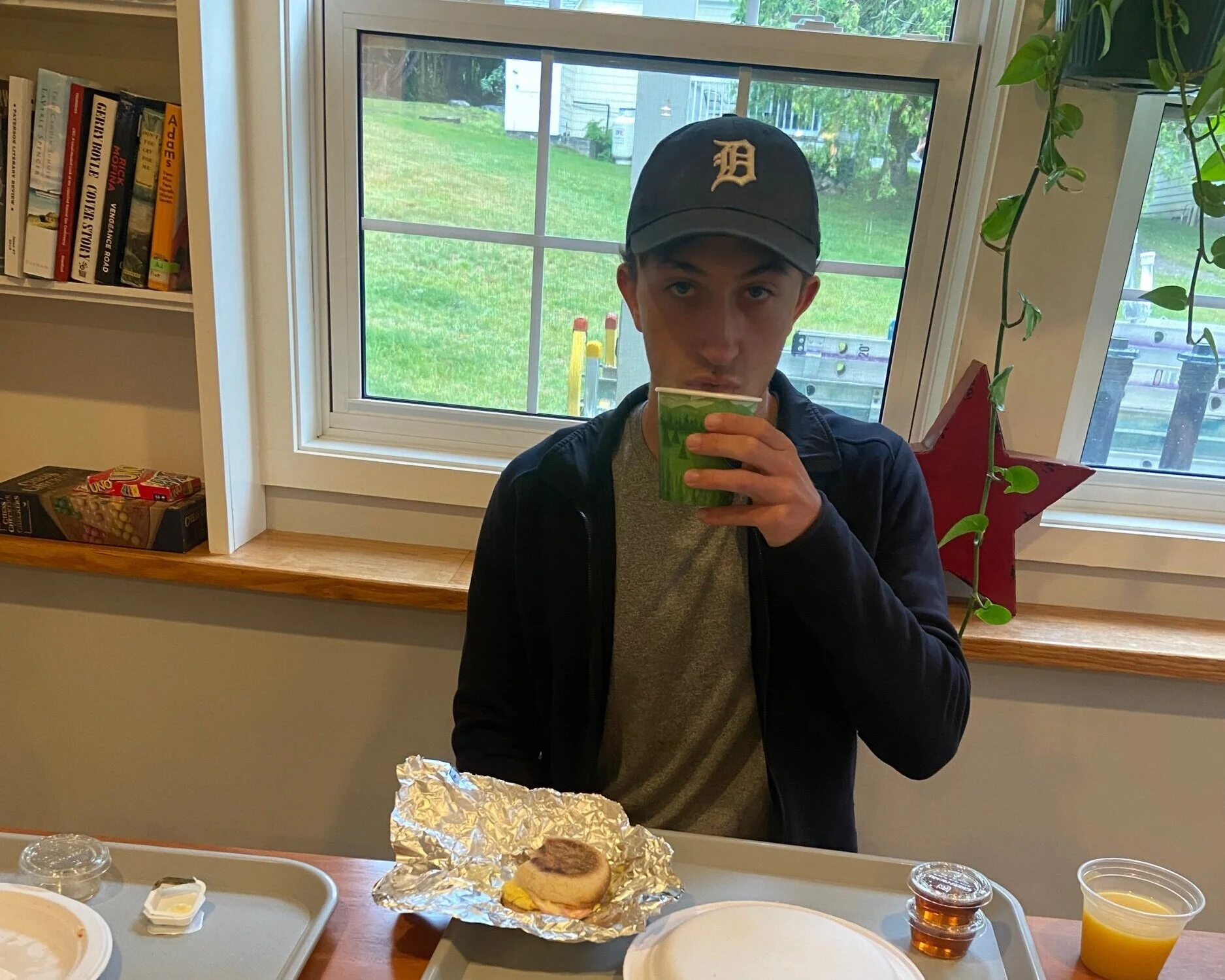 We went into a “Mickey D’s”, and I had some eggs and bacon. The bacon tasted like plastic.