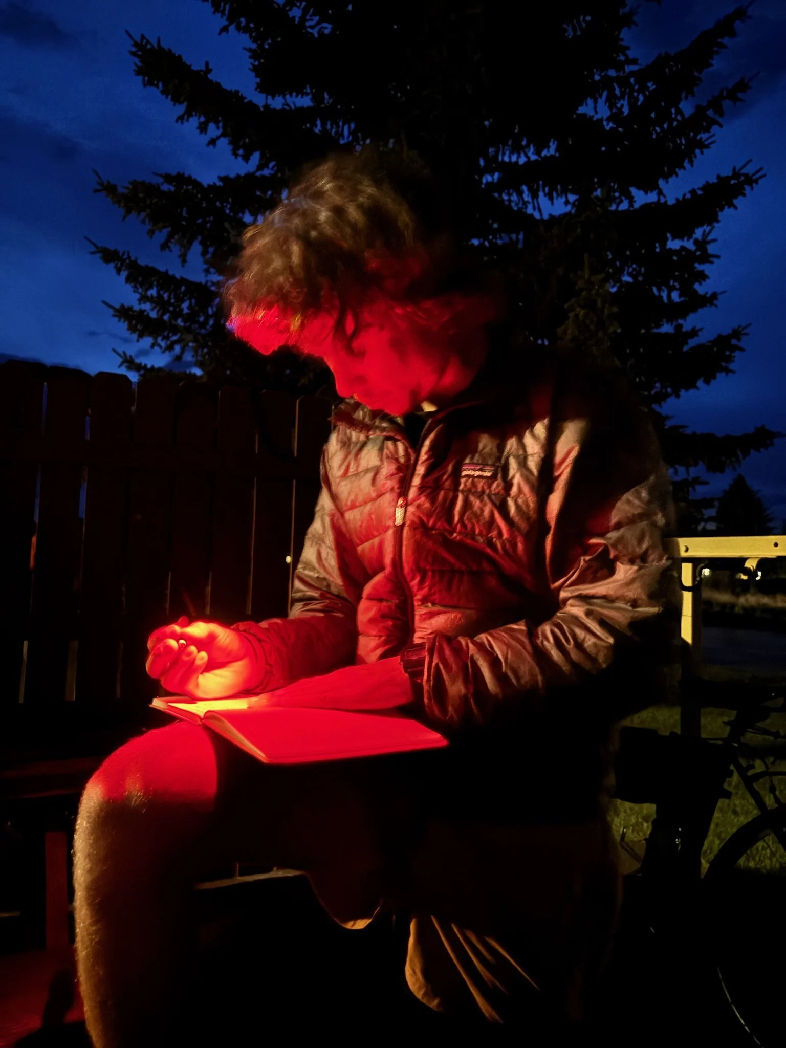 A late dinner and some last-minute journaling in the Twin Bridges town park