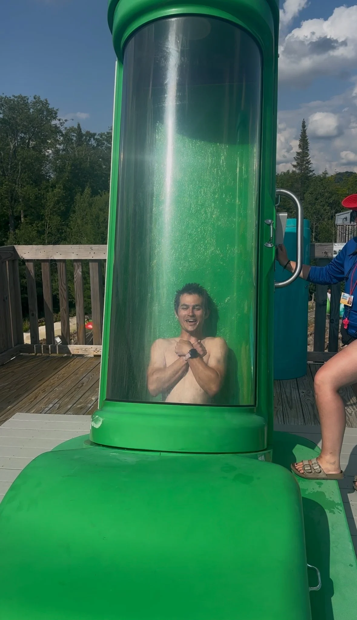 Time to play 😈. With all of our excitement, it took us a few minutes to pinch ourselves and come up with a gameplan for the afternoon. A massive green slide greeted us by the entrance, so we agreed to start there and figure out the rest afterwards. Once we climbed 100 feet to the top of the green slide, aka The Shadow, we could see the entire safari and all of its rides. While waiting our turn, we plotted our strategic path to hit each slide and maximize fun.