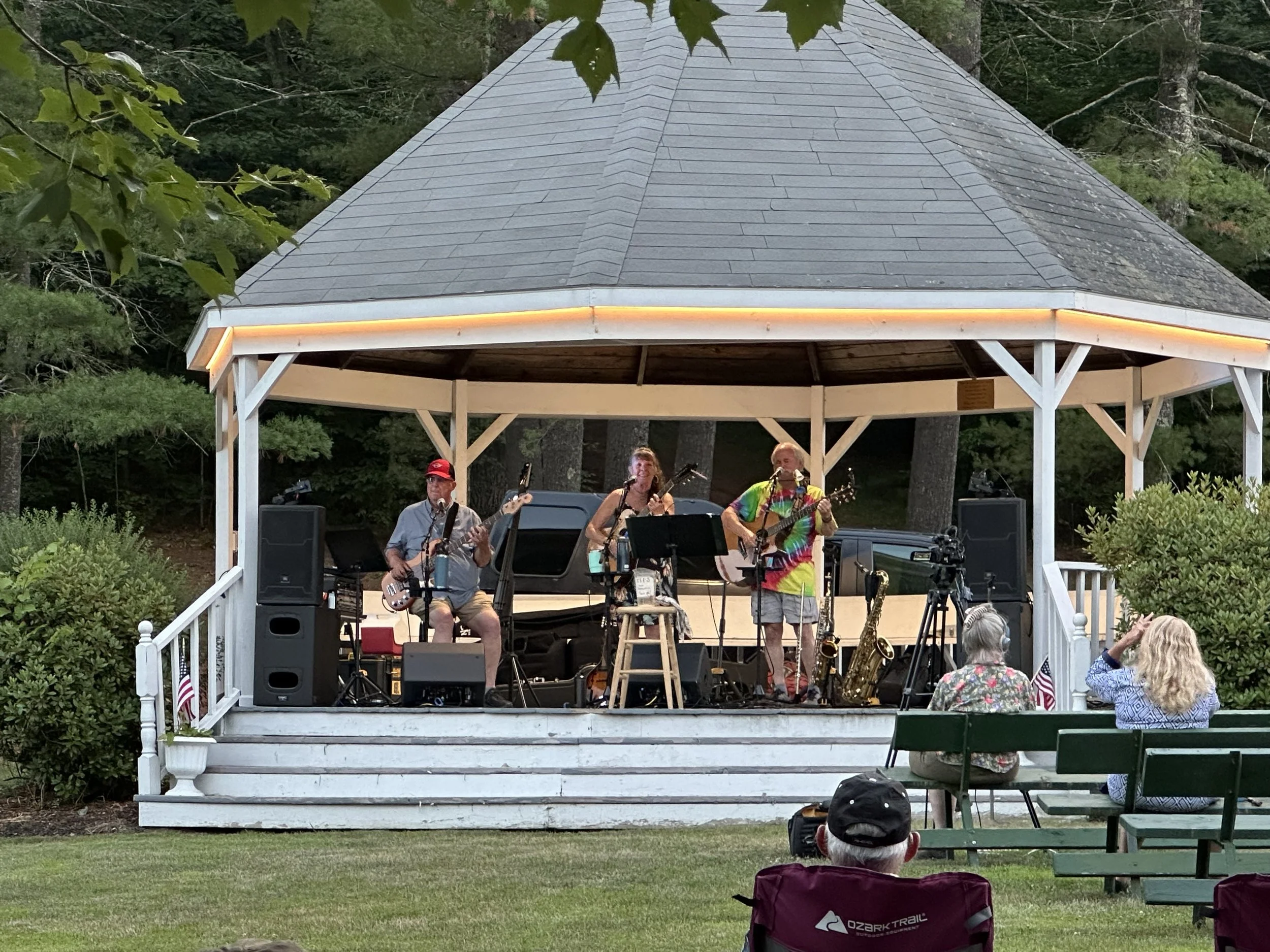 On our way to the campsite in Fryeburg, we saw a poster for some outdoor music in the city park. We asked some residents about this event at the grocery store, and they said that it was “old people music,” and that we probably wouldn’t be interested. As four big fans of old people music, we were interested, so we took our camp stoves to the park and ate our dinner to the sound of Van Morrison and Johnny Cash covers.