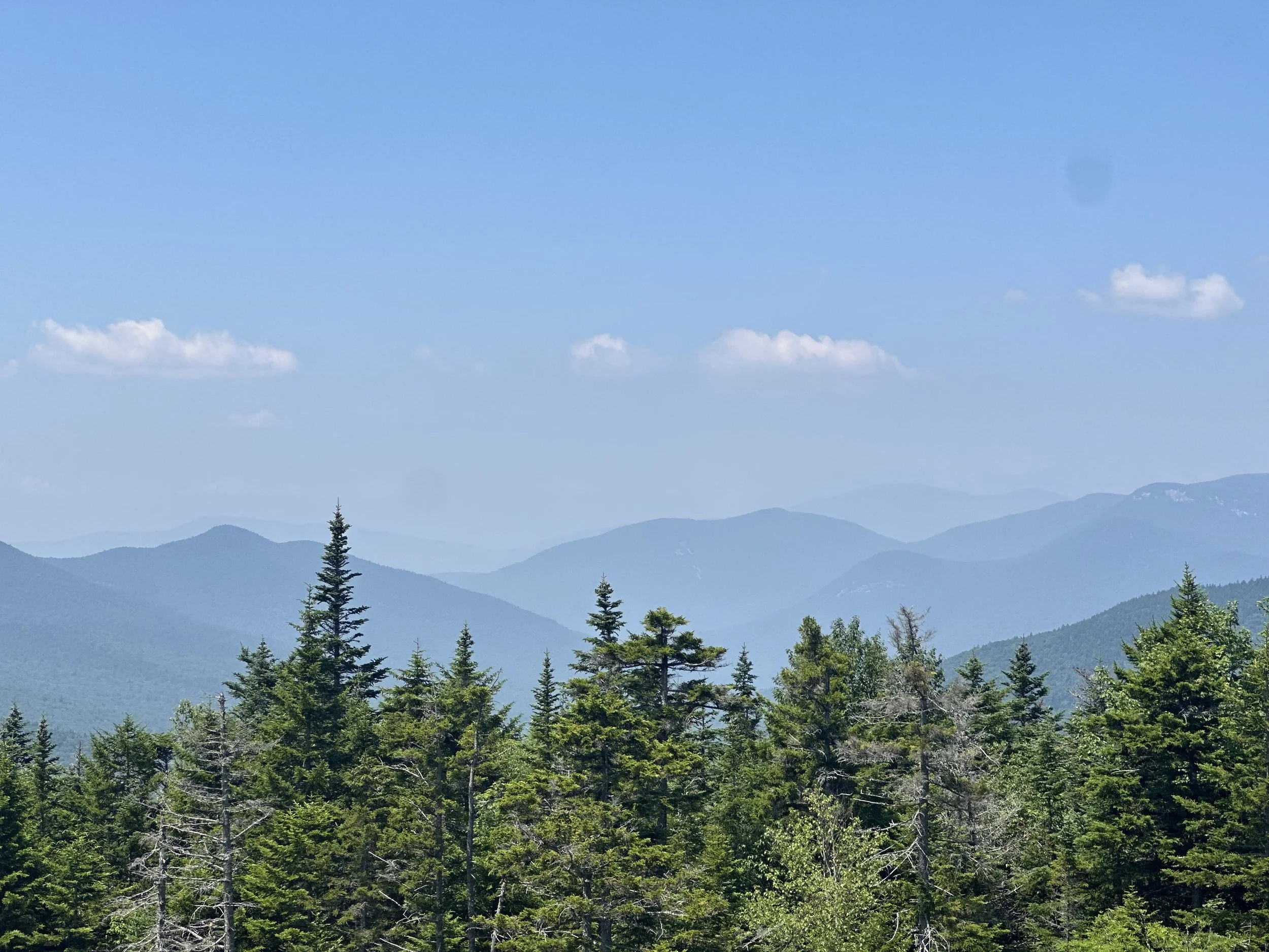 To the west of Kancamagus Pass we could see the Pemigewasset River flowing in a long valley through the White Mountains. To the east we saw the Swift River, which feeds into the Saco River and, 25 miles further east, crosses over into Maine. From our vantage point at the top of the pass, we could practically smell the iconic lobster rolls of the Pine Tree State.