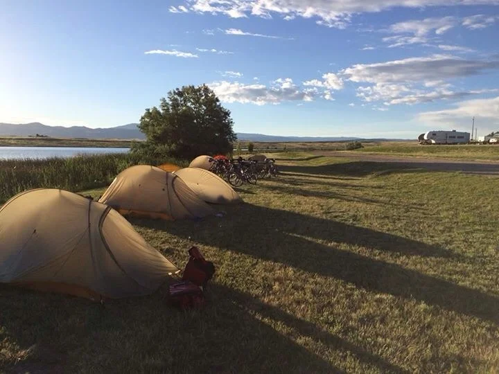 Finally about 6pm we found Saratoga Lake campground. We pitched tents by a beautiful lake, then rode into town for dinner. Saratoga has two geothermal springs that are in the middle of town. Folks flock to them. The boys got a good soak in the cooler pool-103 degrees. The other, at 112, was a bit toasty.